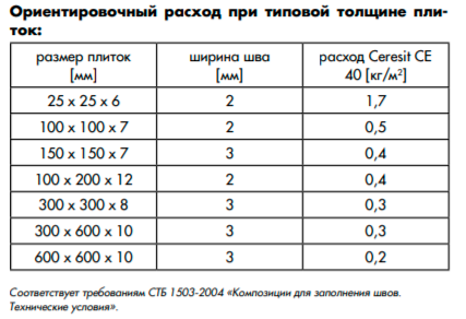 Затирка для плитки Ceresit CE 40 не применяется для деформационных швов между плитками, для швов в облицовке в областях сопряжения стен между собой и с полом, для швов между облицовкой и санитарным оборудованиям, в таких случаях необходимо использовать силиконовый герметик Ceresit CS 25.
